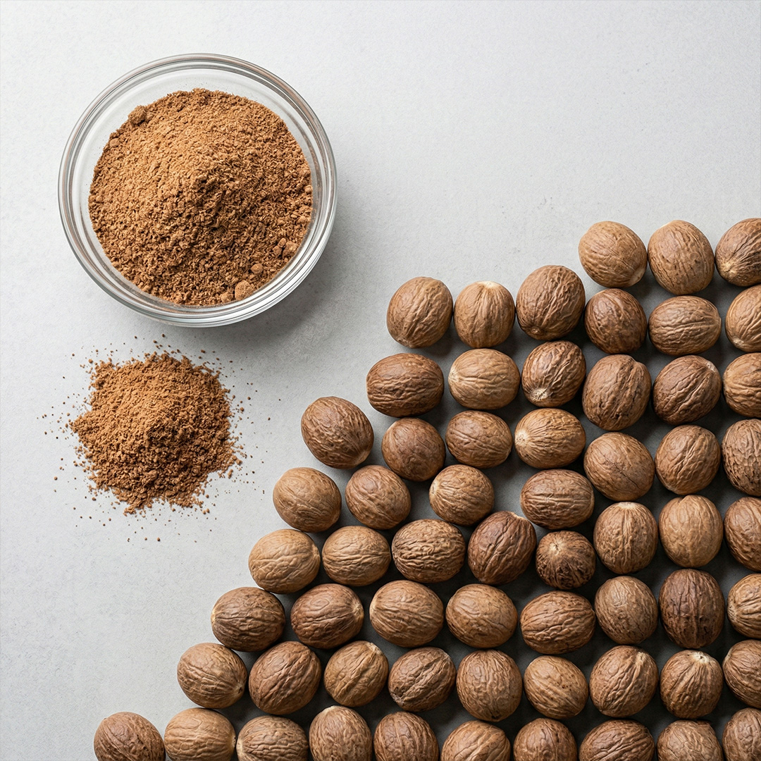 Anahara Overseas supplies high-quality whole nutmeg and nutmeg powder, processed under strict hygiene and grading standards. With controlled moisture levels and export-ready packaging, our nutmeg ensures freshness, strong aroma, and compliance with global food safety requirements.